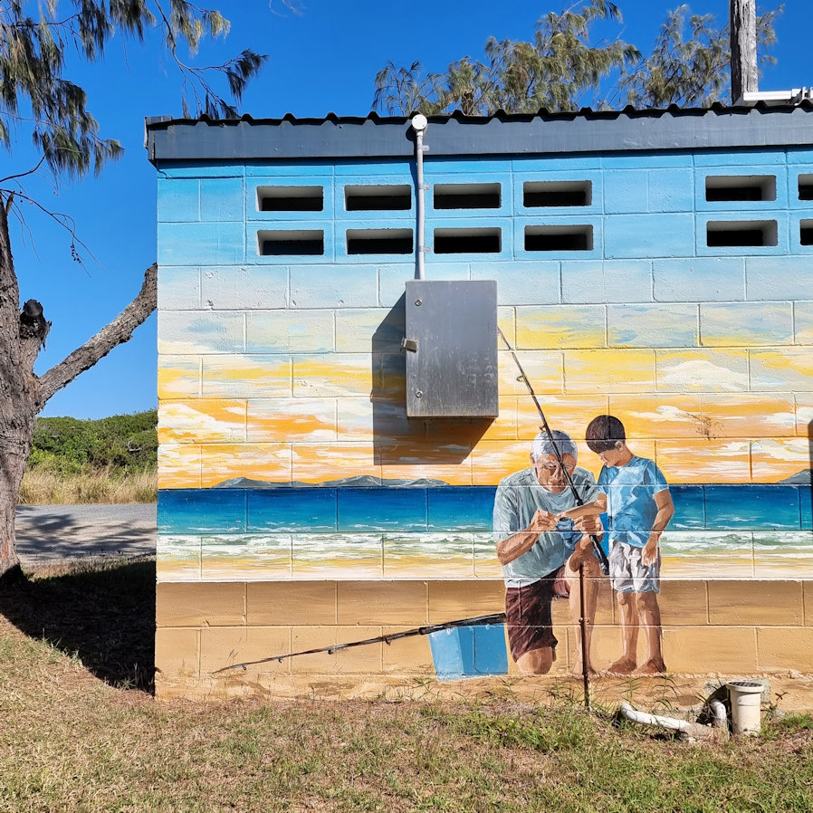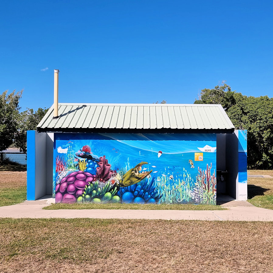 Recently we discovered an art trail along the Capricorn Coast spanning 21km with 25+ locations to stop and admire. Most of the artwork is displayed on toilet blocks which at times made for taking photos an art in itself haha.