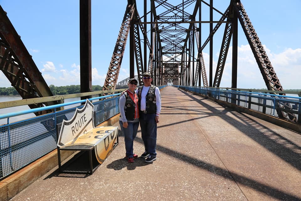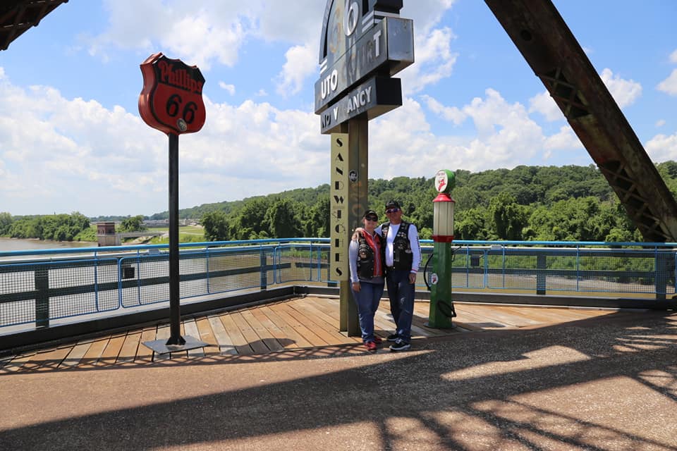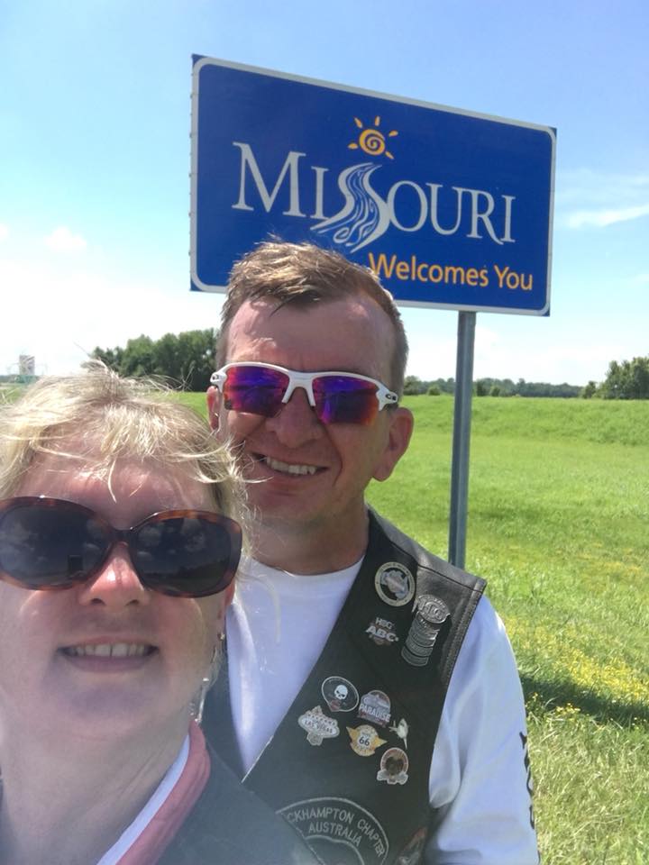 Today we journeyed from Illinois to Missouri. A shorter journey of around 161 mile (256Km). Having already ridden the pre and post 1930 alignments the day before we chose to head straight to Missouri on the post 1930 alignment with no stops until the Chain of Rocks Bridge.