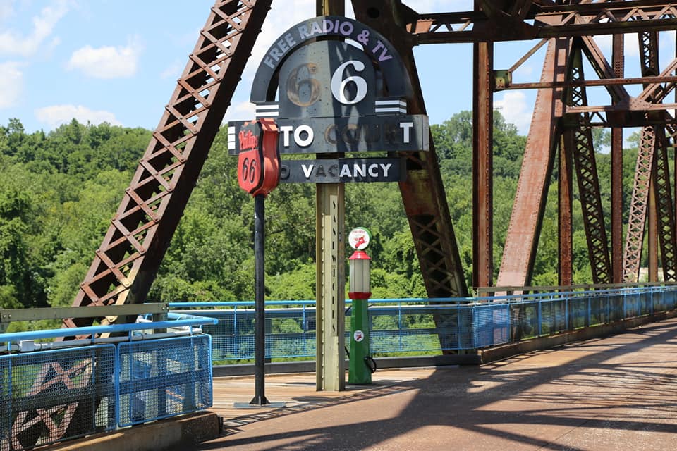 No longer used for road traffic it now has a walking and biking trail across it. If you are doing Route 66 this is a stop worth making.