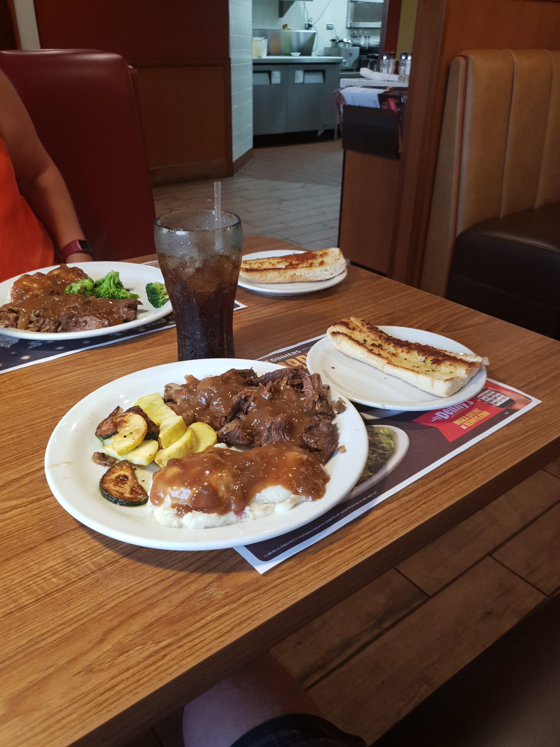 Leaving Ted Drewes we navigated our way to another Harley-Davidson delaership. This one being St. Charles Harley-Davidson to get another tee shirt for my collection. Then it was on to our motel, we stayed at the Super 8 Eureka/Six Flags at Eureka, MO. For dinner it was  short stroll to the local Denny’s.