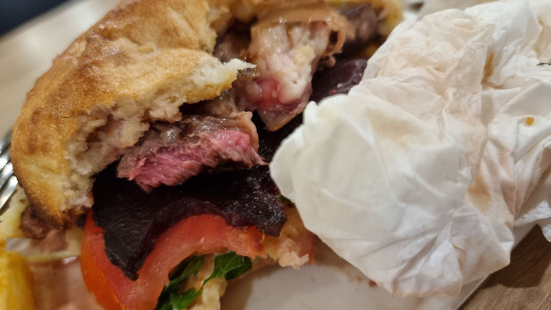 My steak was cooked well, Mrs. Thirsty’s steak sandwich was still mooing though.