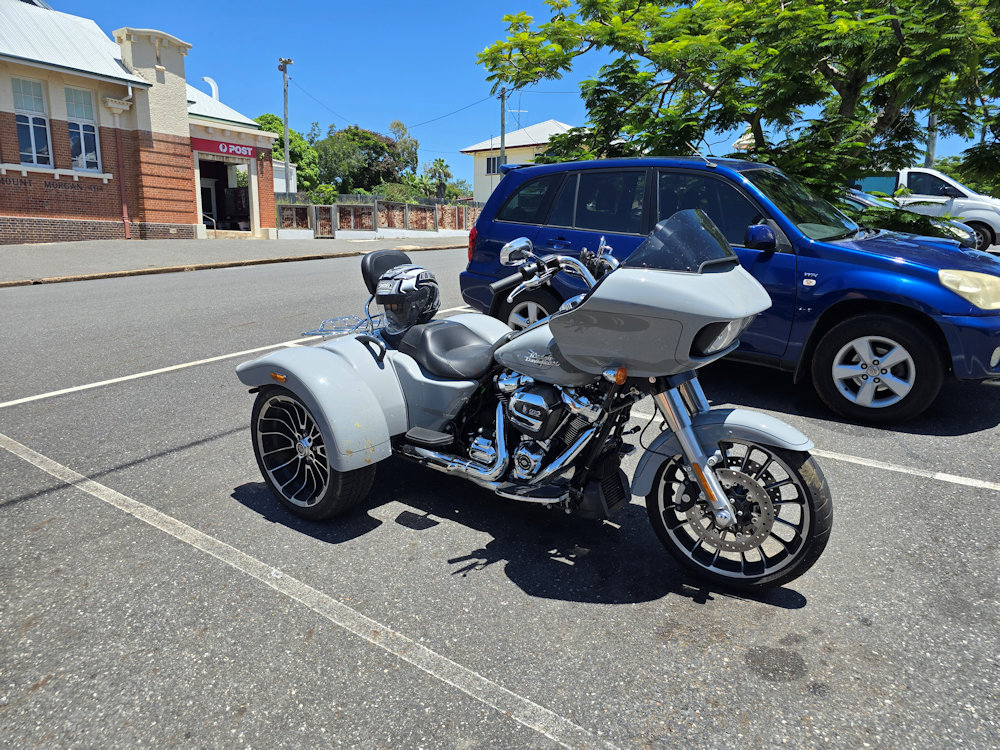Once we were on the road we were getting into the groove of some short trips and quickly realised we would like a bit more comfort for the pillion. We went to check out the Tri-Glide and Rockhampton Harley-Davidson and had missed the Iron Horse Metallic Tri-Glide by one day. So we decide to order one and trade the Road Glide 3 in after only 5 months of ownership.